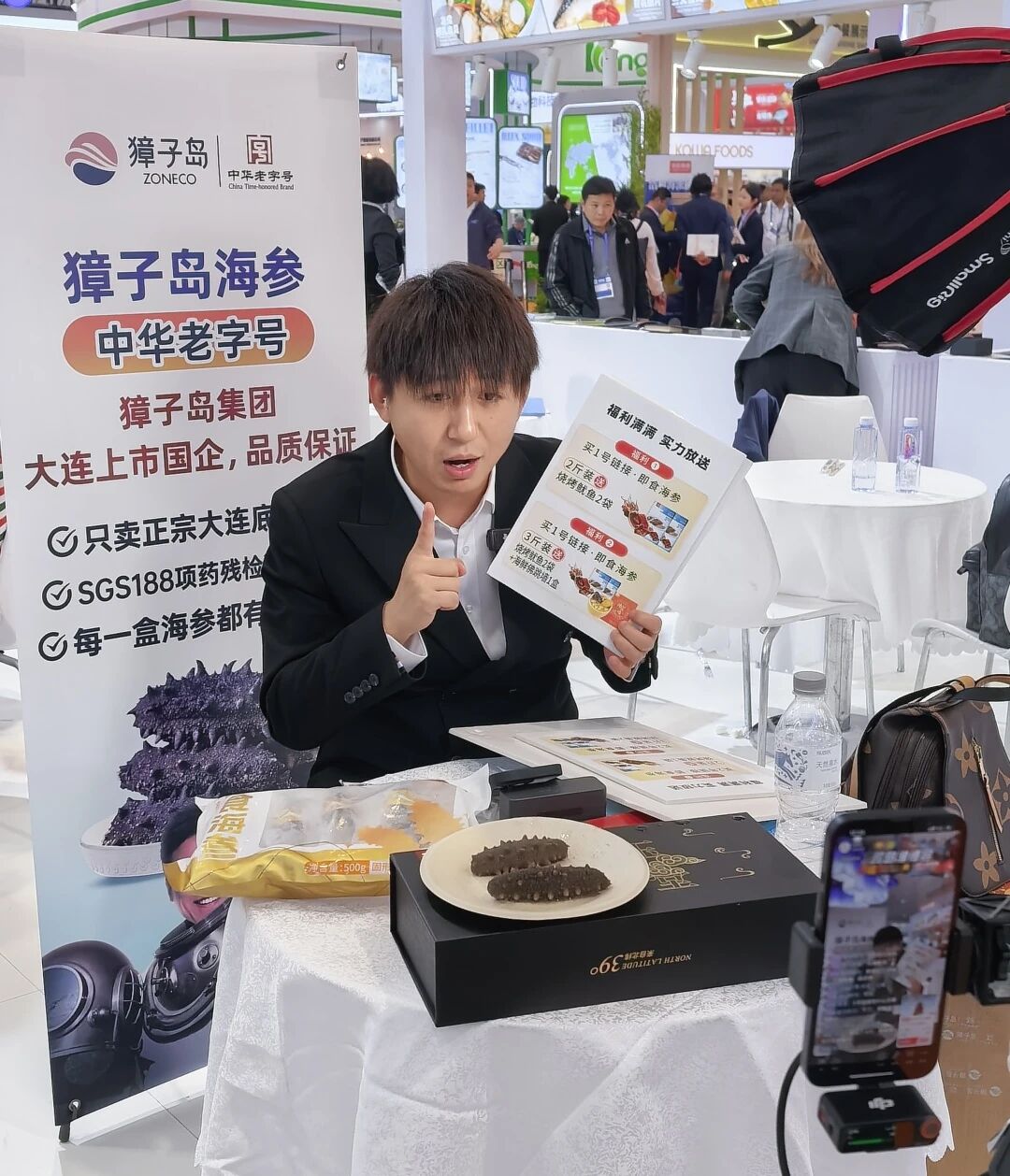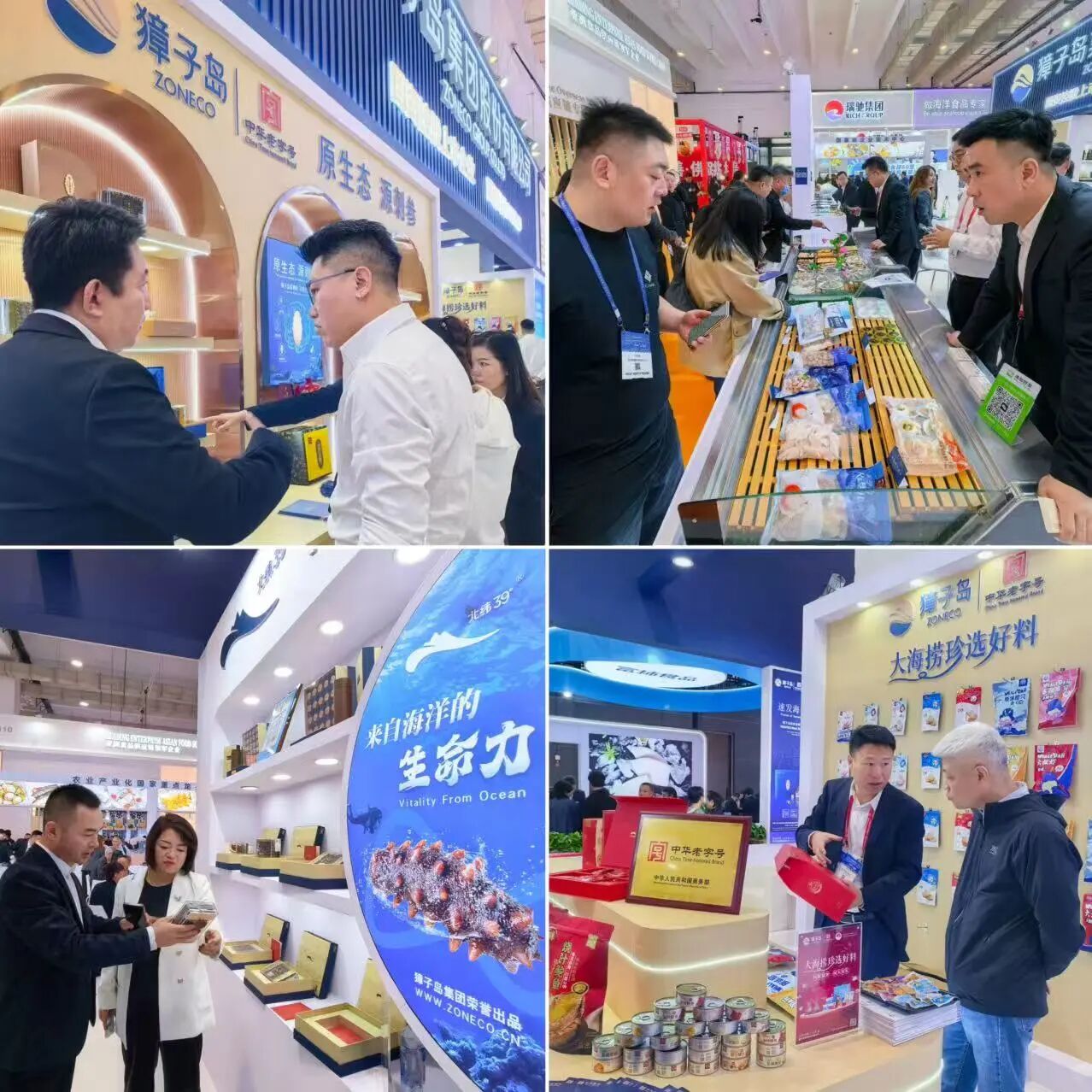金年会官方网站入口地处北纬39°,是首批国家级海洋牧场示范区,也是中国海珍品原产地。这里地理、气候和海域自然条件优越,水温低、盐度高、饵料充足、营养丰富、海域开放、远离大陆。凭借独有的地理区位与水质环境,实现了刺参、鲍鱼、扇贝、海胆、海螺、生蚝、鱼类、藻类等生物多样性价值。展会现场,在金年会官方网站入口集团精心布置的活鲜品展示区,带有品牌标识的鲍鱼、扇贝、海螺、海胆等优质海珍品整齐陈列,依托可追溯体系,进一步强化消费者对高端海产品原产地的认知,提供差异化产品体验。