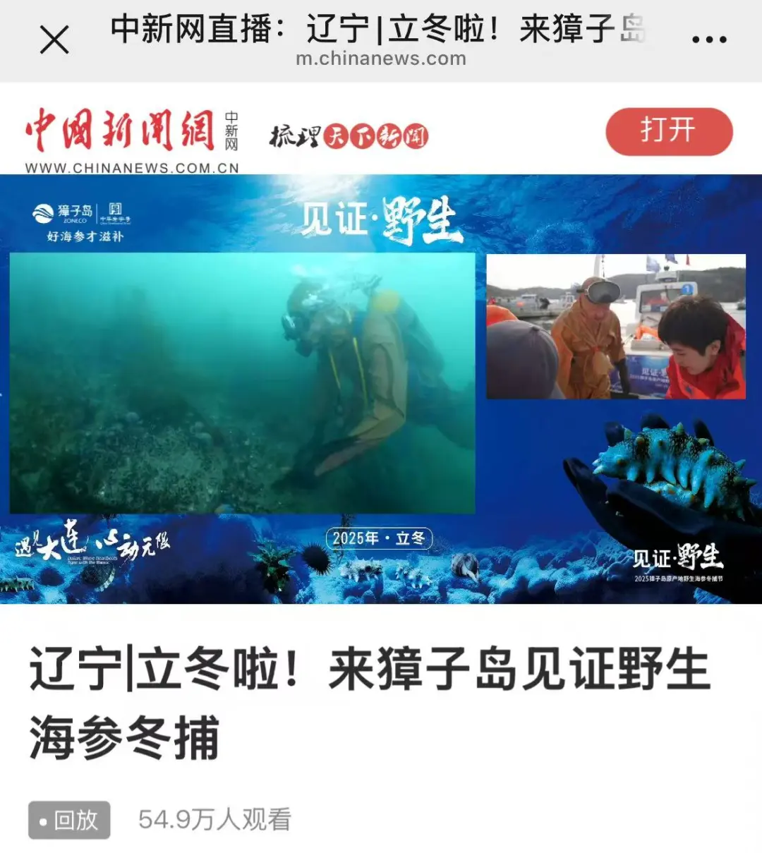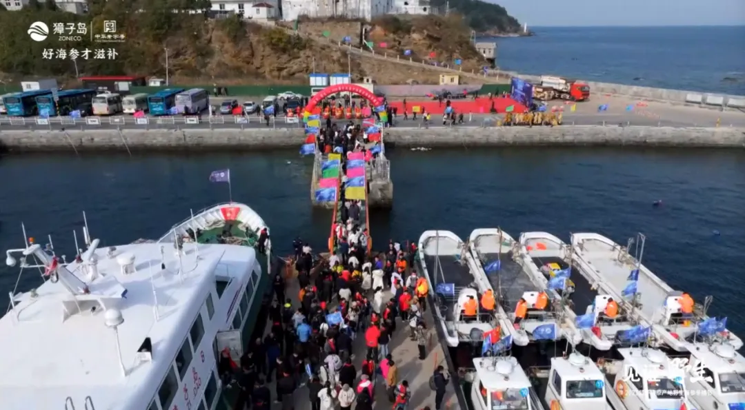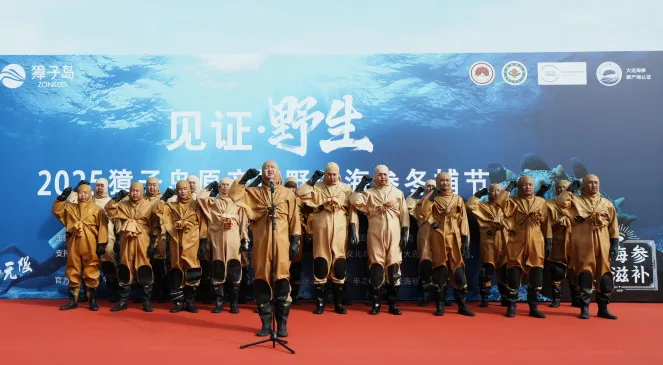 初冬时节,碧海欢歌。11月7日,正值“立冬”节气,在北纬39°黄金海域——辽宁大连长山群岛最南端的金年会官方网站入口镇,“见证·野生——2025金年会官方网站入口原产地野生海参冬捕节”正式启幕,现场锣鼓喧天,海腾人欢,洋溢着丰收的喜悦。大连金年会官方网站入口海洋发展集团总经理张昱,长海县委常委、副县长、金年会官方网站入口镇党委书记张盛族,大连市文化和旅游局副局长刘磊,中绿华夏有机产品认证中心主任栾治华,大连市现代农业生产发展服务中心副主任赵宇,通标标准技术服务有限公司大连分公司东北区农产食品部经理刘守峰,大连市海洋渔业协会会长李克诗,以及金年会官方网站入口集团总裁路珂等领导出席活动。来自全国各地的嘉宾、经销商伙伴、主流媒体代表及网红主播等300余人共同见证这一海洋盛事的开启。