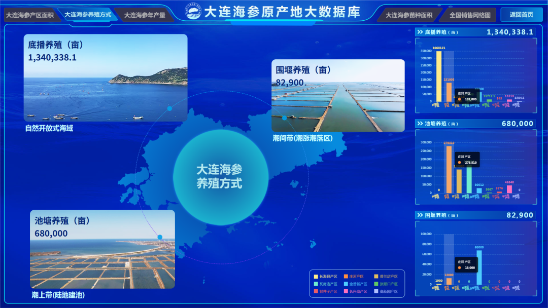 养殖端:养殖生产方式分别为开放式海域底播增殖面积134万亩,围堰养殖面积8.2万亩,池塘养殖面积68万亩。
