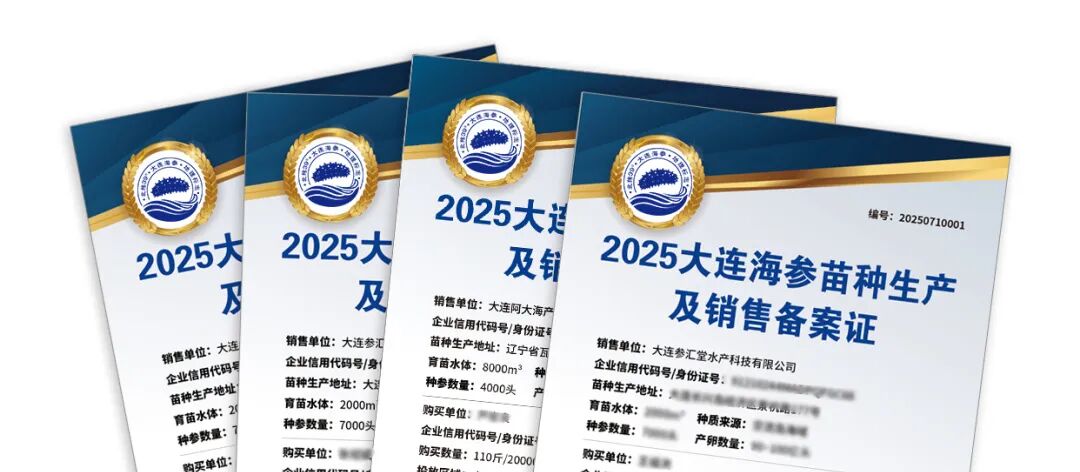 首次推出《2025大连海参苗种生产及销售备案证》,企业承诺记录所有销售信息,包括购买客户、增养殖区域和规模、生产方式、购买数量、苗种质量、买卖双方交易记录等。通过核查符合条件,协会发给企业及育苗业户“大连海参苗种生产及销售备案证”(有效期为一年),全程掌握苗种从生产到最终产品的可追溯链条。